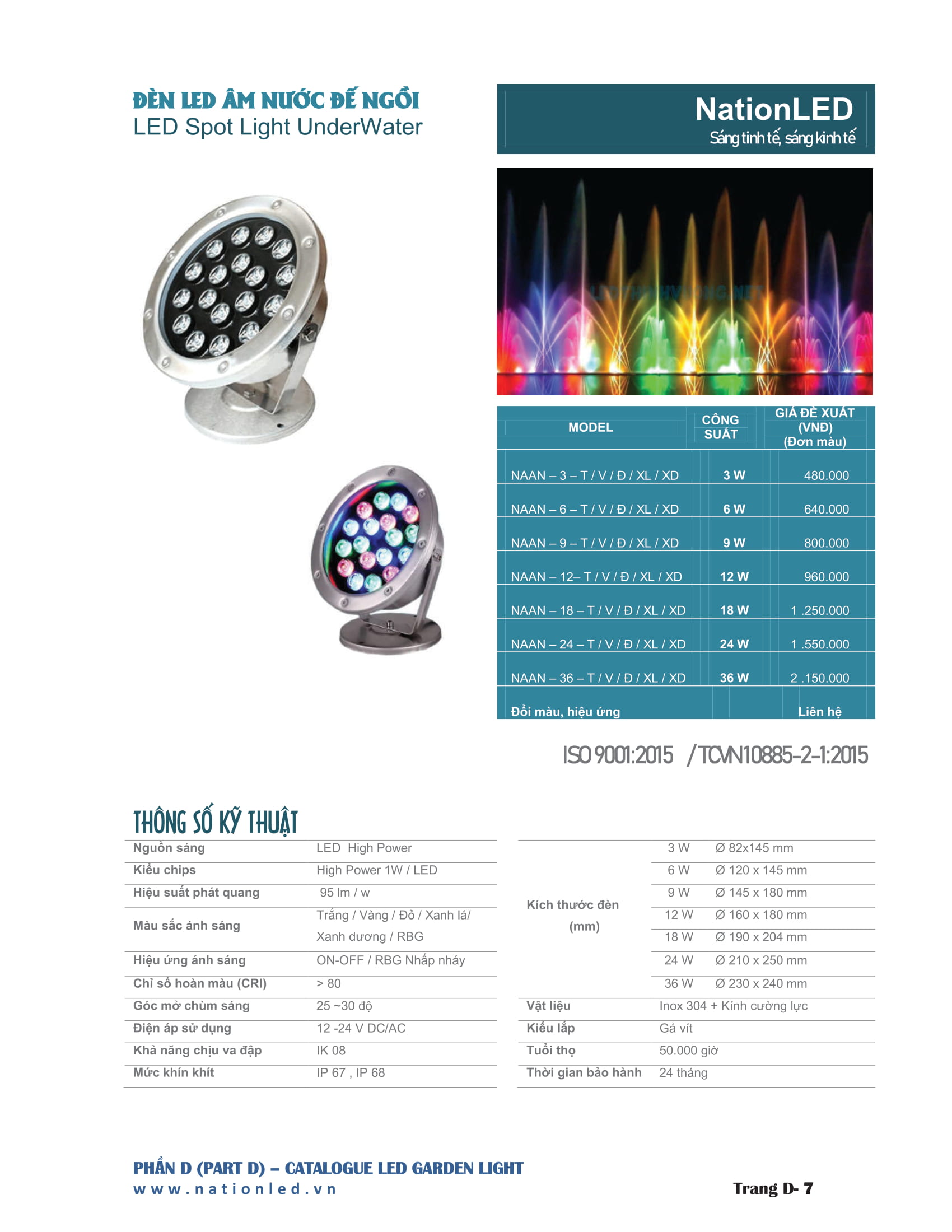 Tất cả chúng ta đều đã từng bắt gặp ánh sáng được chiếu sáng trong các đài phun nước chiếu sáng từ dưới mặt nước, bạn đã bao giờ tự hỏi rằng thiết bị nào chiếu sáng được như vậy? Dù bạn chưa biết hay đã biết thì hãy cùng NationLED chúng tôi tìm hiểu về loại đèn này nhé. Đèn LED âm nước là dòng đèn có kiểu dáng chắc chắn được thiết kế chuyên dụng dùng để chiếu sáng dưới nước cho các bể cá, đài phun nước, hồ bơi, ...