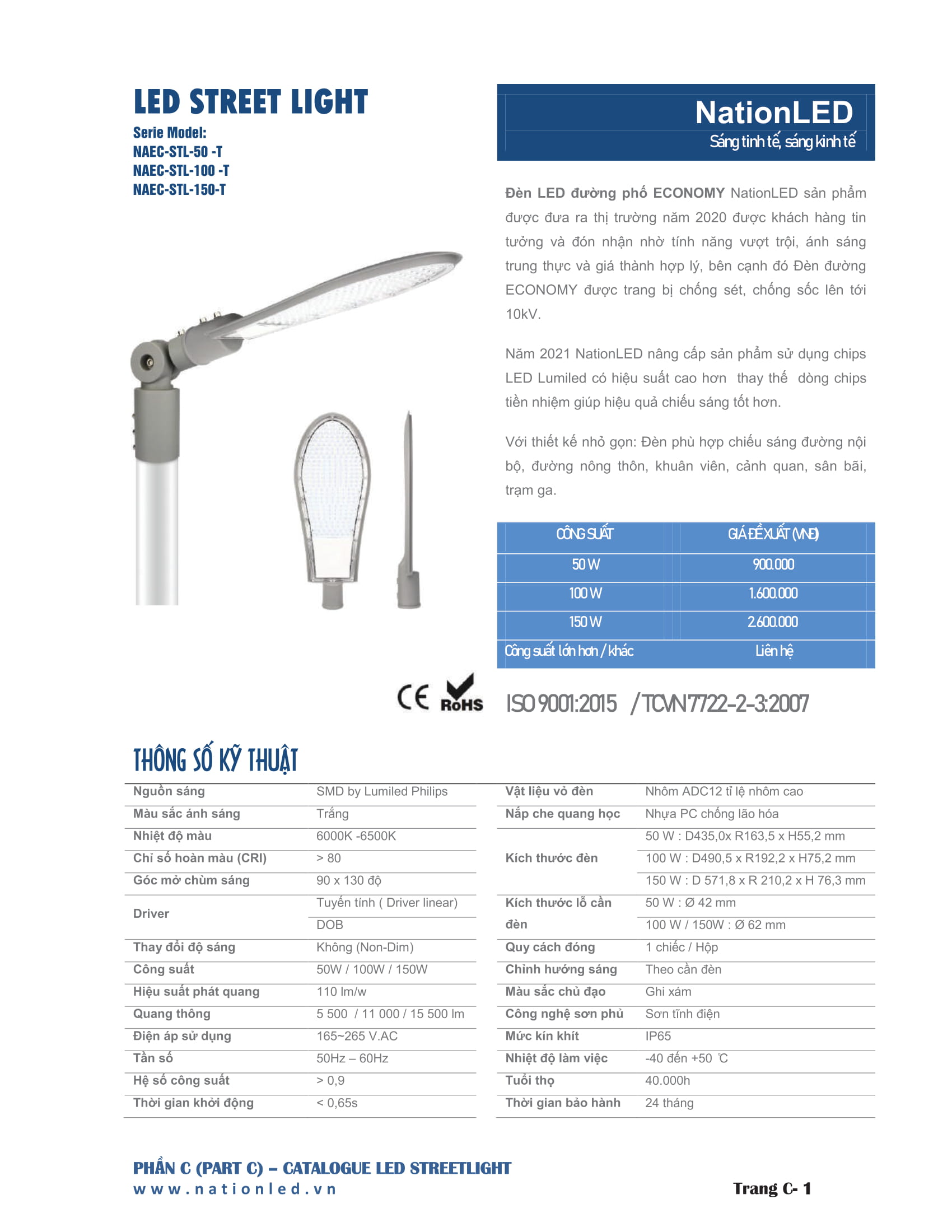 NationLED chúng tôi xin giới thiệu tới Quý khách hàng sản phẩm đèn đường LED Economy (Hay còn gọi là Street LED Eco) có khả năng hoạt động bền bỉ, tiết kiệm năng lượng, phù hợp lắp đặt trong mọi điều kiện môi trường như :