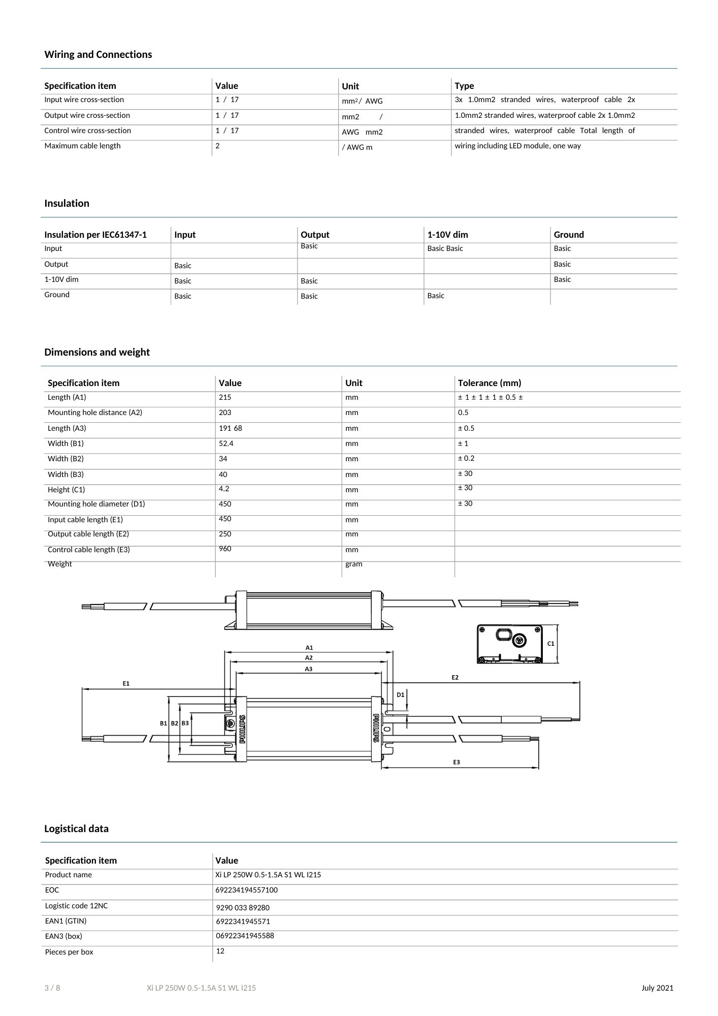 Driver Xi LP 250W 0.5-1.5A S1 WL I215 có hiệu suất cao, khả năng chống nước IP67, hoạt động bền bỉ, ổn định. Tuổi thọ lên tới 100.000h. Thời gian bảo hành sản phẩm 3-5 năm.